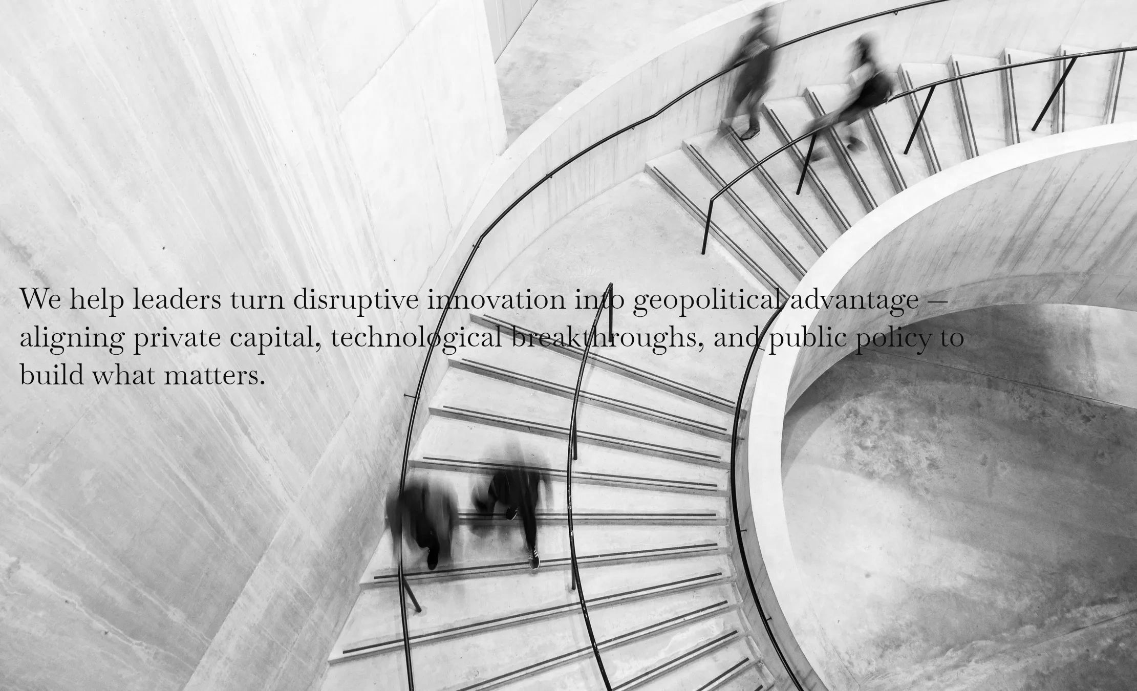 We work at the critical intersection of innovation, strategic capital, and government,where breakthrough technologies either scale into strategic capacity or die in the valley of execution.